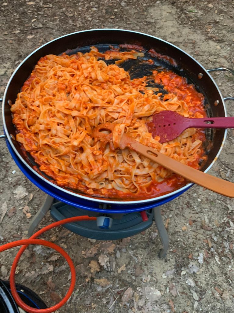 Terwijl Bart met de kinderen het strand en de camping ging verkennen, maakte ik een snelle pasta met zalm. Nu kon de vakantie écht beginnen.